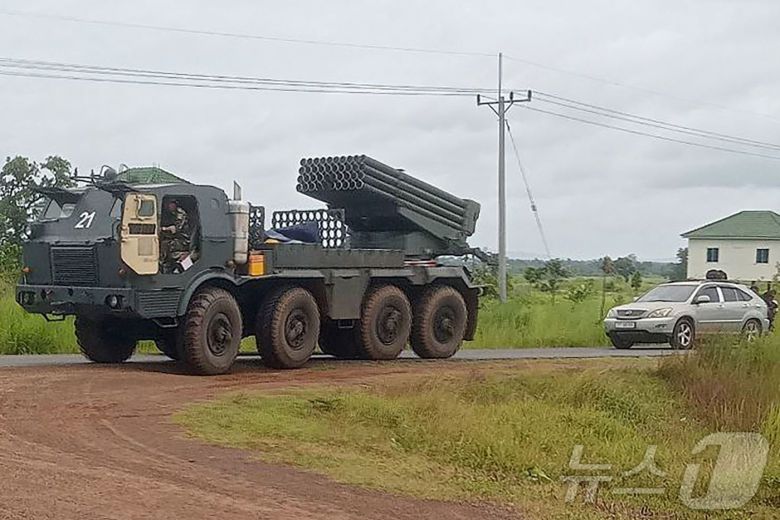 동남아시아 이웃국 태국과 캄보디아가 24일 국경 지역에서 교전을 벌인 가운데 캄보디아 군이 교전에 사용한 러시아산 BM-21 다연장로켓포가 기지로 복귀하고 있다. 2025.07.24 ⓒ AFP=뉴스1 ⓒ News1 최종일 선임기자 |