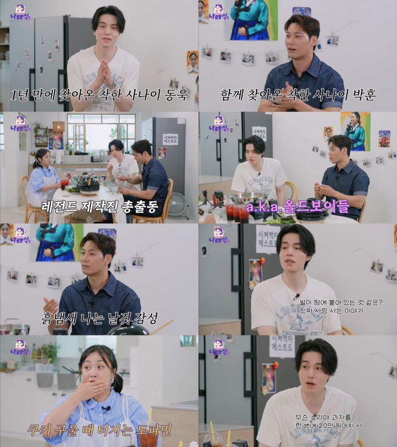 이날 방송에서 박나래는 직접 준비한 보양식을 내놓았다. 그녀는 "1년 만에 모신 손님이라 신경을 더 썼다", "드디어 두 배우를 모실 수 있어 영광이다"라며 어렵게 성사된 만남에 설레는 마음을 감추지 못했다. 박나래가 준비한 손맛 가득 담긴 '파김치+갓김치 민물장어 전골'과 그녀의 필살기 '차돌 곤드레 솥밥' 등 정성 가득한 요리에 이동욱은 "우리 10만 원씩 내고 갈게"라며 감탄을 아끼지 않았다.