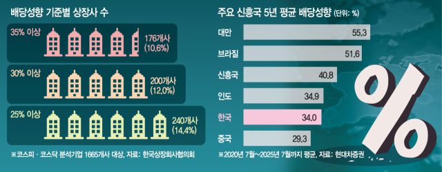 상장협 관계자는 “국내 상장사는 설비투자 중심의 산업구조를 갖고 있어 배당보다는 재투자와 기술 혁신을 우선할 수밖에 없다”며 “도널드 트럼프 미국 대통령의 보호무역 기조와 고율 관세 확대 등 글로벌 불확실성이 기업 부담으로 작용하는 상황에서 지나치게 높은 기준은 현실에 맞지 않는다”고 했다.