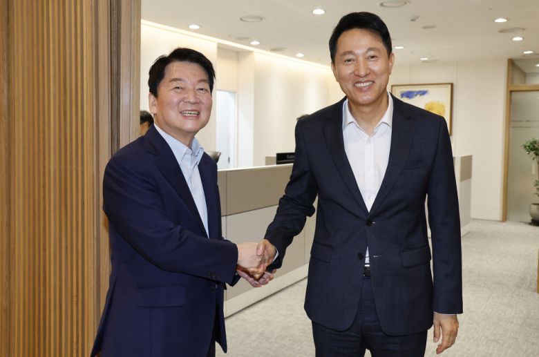 오 시장은 "이번 전당대회는 당 회생의 중대한 고비가 될 것"이라며 "당내 기득권 투쟁에 매몰된 지난 과거를 반복하면 국민의힘에 미래는 없다. 책임져야 할 사람들은 책임지고, 미래를 향해 나아가는 것이 순리"라고 밝혔다. 회동을 마치고 나온 안 의원은 "혁신안을 강조하고 제시하는 사람이 많을수록 더 많은 국민과 당원의 관심이 모아지고, 혁신이 현실화될 수 있는 확률이 높아진다"고 말했다.