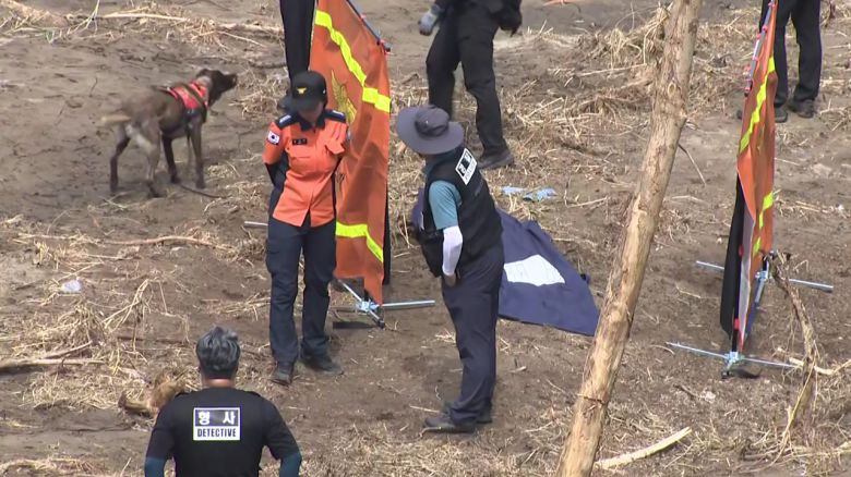 끈을 잡고 한 줄로 서서 하천 바닥을 훑고, 물속 냄새를 맡을 수 있는 수난탐지견도 투입했습니다.