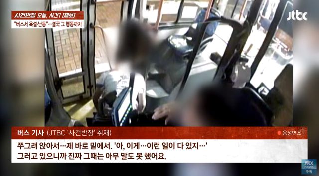 23일 전파를 탄 JTBC 사건반장에 따르면 사건은 이달 19일 밤 10시쯤 대구 시내버스 안에서 벌어졌다. 30년째 시내버스를 운행 중인 베테랑 기사 A씨는 당시 한 남성 승객이 일회용 컵에 음료를 들고 탑승하려 하자 시내버스 운송약관에 따라 음료 반입이 금지돼 있다는 이유로 승차를 제지했다.