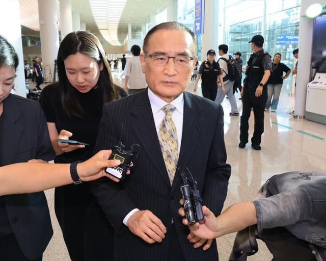 관세 협상 등 논의를 위해 미국을 방문한 위성락 대통령실 국가안보실장이 24일 인천국제공항을 통해 귀국하고 있다. 뉴시스 |