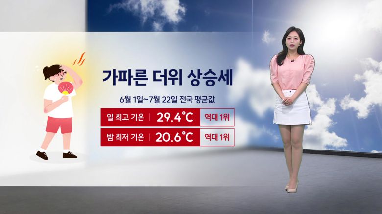 일 최고 기온 평균은 29.4도로 작년보다 0.7도나 높았고 밤사이 최저 기온 평균은 20.6도로 작년보다 0.6도 높았습니다.
