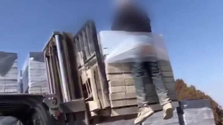 지게차가 남성과 벽돌 더미를 들고 야적장 곳곳을 돌아다니자 재밌다는 듯 웃음소리가 들립니다.