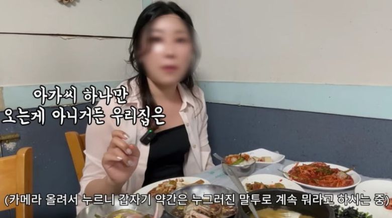 앞서 식당을 방문했던 유튜버 A씨가 공개한 영상에 따르면 혼자 2인분을 시킨 상황에서 업주는 “우리 가게는 아가씨 한 명만 오는 게 아니다. 얼른 먹어라. 이래서 있으면 무한정이잖아. 무한인 거야”라고 짜증을 냈다. A씨는 “먹는 데 오래 안 걸린다”고 했으나, 업주는 “예약 손님을 앉혀야 한다. 미안하지만 그렇게 안 해요”라며 호통을 쳤다.