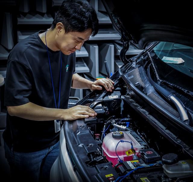 현대위아의 한 연구원이 25일 경기도 의왕시 현대위아 열관리시험동에서 공조 시스템 시험을 진행하고 있다. /현대위아 |