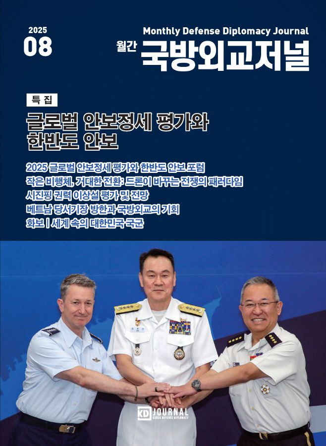 또한 △드론이 바꾸는 전쟁의 패러다임 △이스라엘-이란 12일 전쟁 종료 이후 동향 및 전망 △시진핑 권력 이상설 평가 및 전망 △2025년 일본 방위백서와 안보적 함의 등 독자들의 관심을 끄는 최근 국제 이슈를 다루는 기고문이 게재됐다.