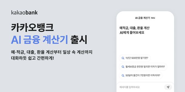 25일 금융권에 따르면 카카오뱅크는 지난 5월 선보인 'AI 검색'에 이어 'AI 금융 계산기' 서비스를 지난달 출시했다.