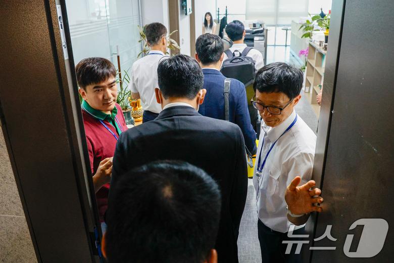 (서울=뉴스1) 안은나 기자 = 김건희 여사의 각종 의혹을 수사하는 민중기 특별검사팀이 '양평 고속도로 특혜 의혹' 관련 김선교 국민의힘 의원실 압수수색에 나선 25일 서울 여의도 국회의원회관 김 의원실에 박스를 든 특검 수사관들이 들어가고 있다. 2025.7.25/뉴스1