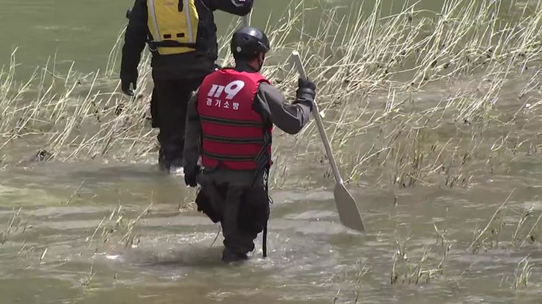 뒤편 강가를 보면 곳곳에서 막대기를 들고 다니는 수색 인원이 보입니다.