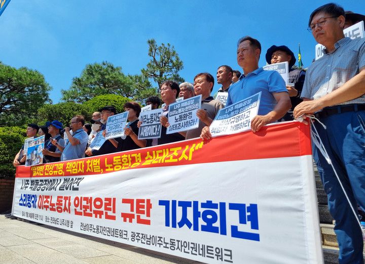 광주전남이주노동자인권네트워크는 지난 24일 나주시청 앞에서 기자회견을 열고 "장난이나 벌칙으로 포장될 수 없는 충격적인 폭력이 벌어졌다"고 규탄했다. 단체는 이 사건을 단순한 일탈로 보기 어렵다며, 한국 사회에 내재한 구조적 차별 문제를 지적했다.