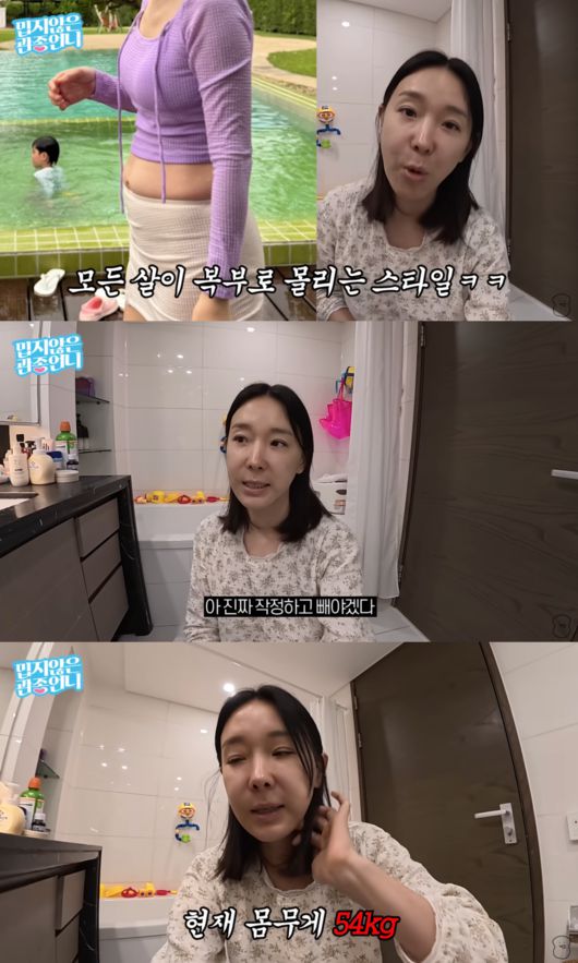 이지혜는 “나는 사실 잘 인지를 못했다. 몸무게도 54kg 전후로 왔다갔다 한다. 나는 내가 살쪘다고 생각하지 않다. 내가 살이 찌면 복부로 몰리는 스타일이다”며 “아는 사람만 아는 거다. 옷으로 잘 가리면 모르고 수영복 입으면 적나라하게 나타난다”고 했다.