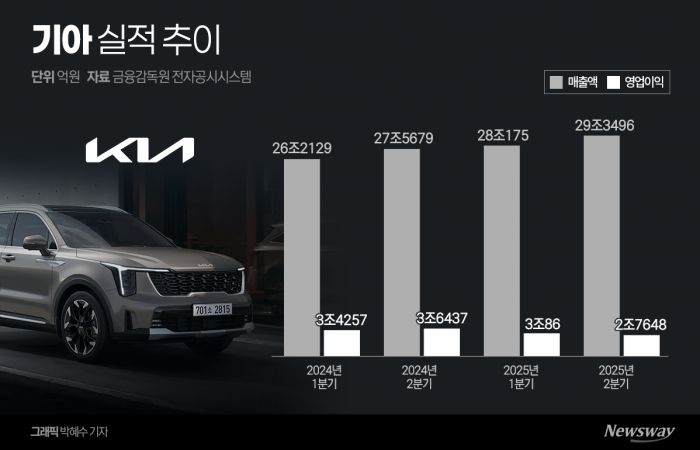 현대자동차에 이어 기아도 올 2분기 미국 트럼프 행정부발 관세 여파를 피하지 못했다. 글로벌 하이브리드 수요 증가로 역대 분기 기준 최대 매출을 달성했음에도 관세로 인한 수익성 악화가 현실화됐다.