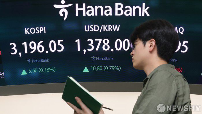[서울=뉴스핌] 양윤모 기자 = 25일 오후 코스피가 전장 종가보다 5.60포인트(0.18%) 상승하며 3196.05로, 코스닥은 2.94포인트(0.36%) 하락한 806.95로 마감한 가운데, 서울 중구 하나은행 딜링룸에서 직원들이 업무를 보고 있다. 서울외환시장에서 원·달러 환율은 전장 대비 10.80원 상승한 1378.00원에 거래를 마감했다. 2025.07.25 yym58@newspim.com