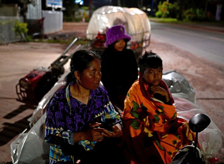 24일(현지시간) 태국과 캄보디아 간 무력 충돌이 일어나 캄보디아 북서부 오다르메안체이주 주민들이 피난을 떠나고 있다. EPA연합뉴스