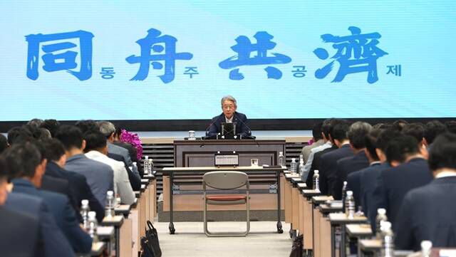 강 회장 주관으로 열린 이날 회의에는 중앙회 임원, 계열사 대표, 집행간부, 지역본부장, 부실장 등 450여명이 참석했다.