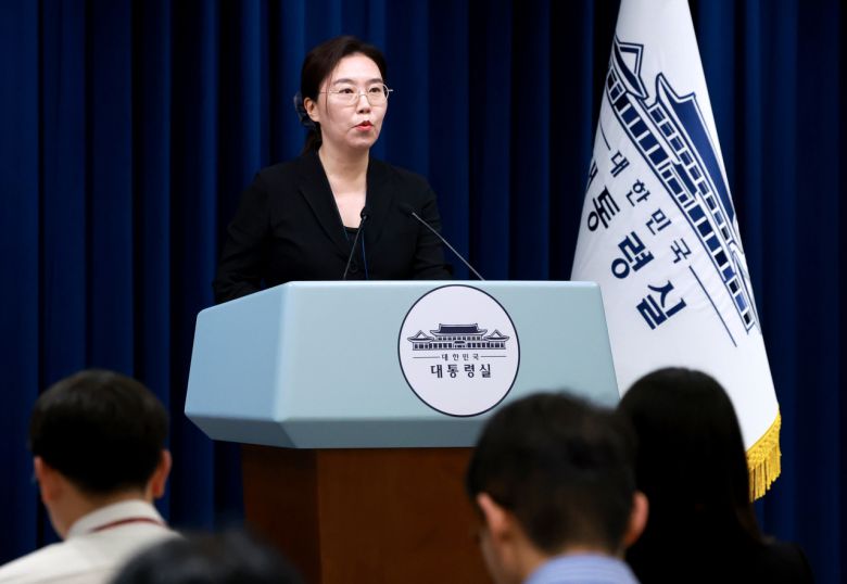 강유정 대통령실 대변인이 지난 24일 서울 용산 대통령실 청사에서 현안 브리핑을 하고 있다. [연합]