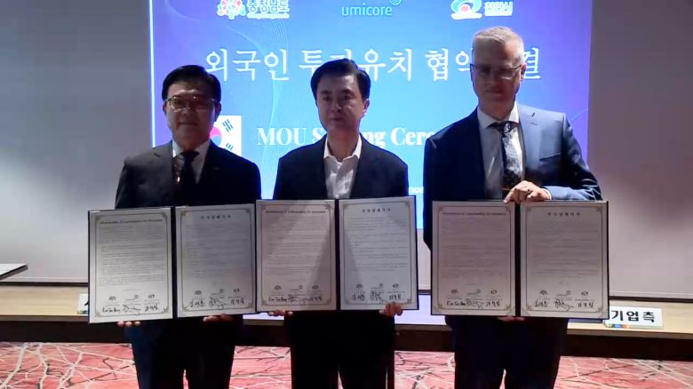 <매트 체레바티 / 유미코아 수석 부사장> "충남 천안 산단에서 사업을 성공적으로 진행을 했기 때문에 유미코아로서는 어쩌면 당연한 행보일 수 있습니다. 추가 투자를 통해서 앞으로 더 많은 성공신화를…"