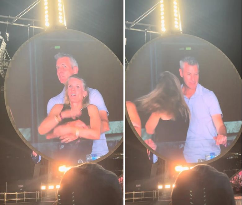 지난 16일(현지시간) 미국 매사추세츠 주 보스턴에서 열린 콜드플레이 콘서트에서 앤디 바이런(男) 아스트로노머 최고경영자(CEO)가 크리스틴 캐벗 최고인사책임자(CPO)에게 백허그를 하며 공연을 즐기는 모습. [뉴욕포스트 홈페이지 캡처] |