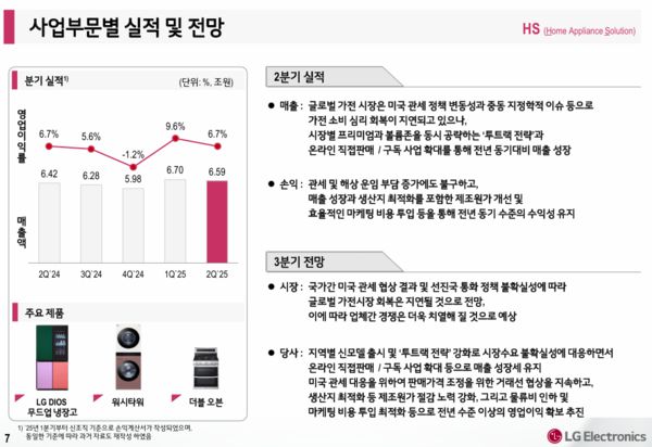 25일 LG전자는 '2025년 2분기 실적발표 및 컨퍼런스콜'을 진행했다.