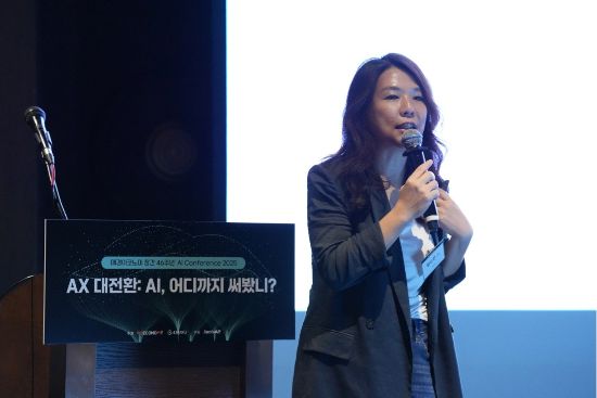 임수진 NC AI 최고비즈니스책임자(CBO)가 24일 열린 ‘AI 콘퍼런스 2025’에서 콘텐츠 제작 혁신을 위한 AI 기술 개발을 소개하고 있다. (사진=매경DB) |