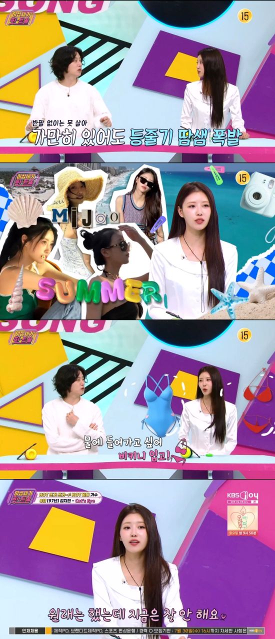 이를 들은 김희철은 여름 휴가 계획이 있는지 질문했고, 이미주는 바다처럼 물이 있는 곳으로 떠나고 싶다고 대답했다.
