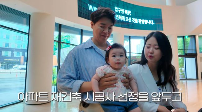 박수홍 가족이 입성하자 현대건설 측에서는 ‘최연소 조합원 재이의 방문을 진심으로 환영합니다’라는 문구로 반갑게 맞이했다.