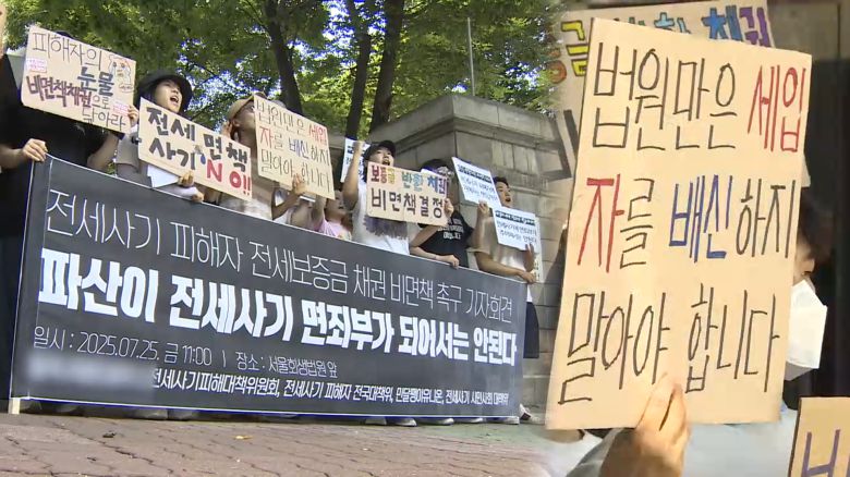 <안산하 / 서울 대림동 전세사기피해자> "저희 건물 임대인 역시 얼마 전 7월 15일 서울회생법원에서 파산을 선고받았습니다. 이것이 지속된다면 법원은 사기 크게 한 번 치고 나서 파산하고 회생해서 남은 삶을 잘 사는 그런 삶을 조장하고 권유하는 것으로밖에"