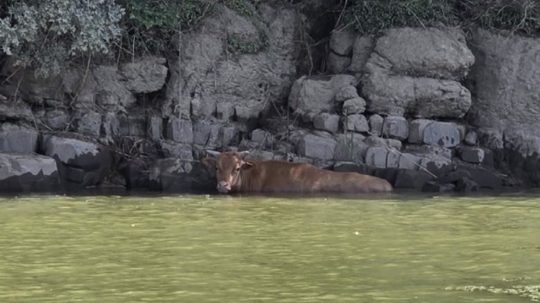 진주경찰서는 오늘(25일) 오전 10시 20분쯤 경남 진주시 진양호에서 소 1마리를 구조했다고 밝혔습니다.