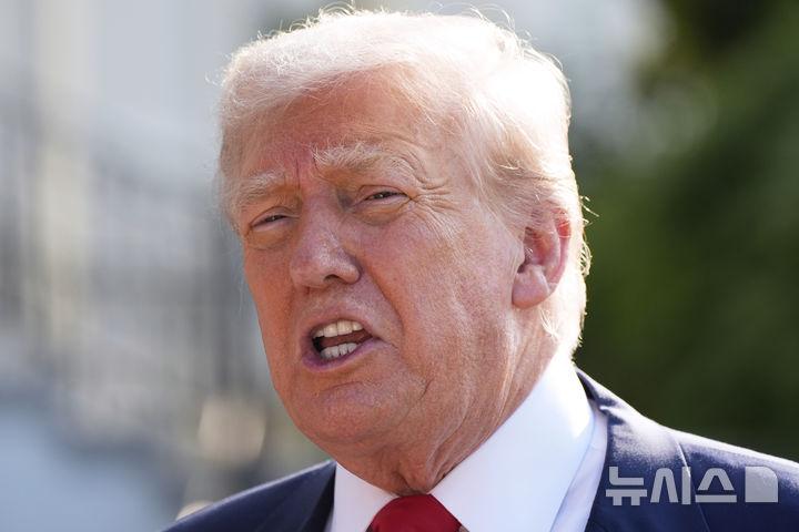 [워싱턴=AP/뉴시스]도널드 트럼프 미국 대통령이 25일(현지 시간) 스코틀랜드 방문을 위해 백악관을 떠나며 취재진 질문에 답변하고 있다. 2025.07.25. |