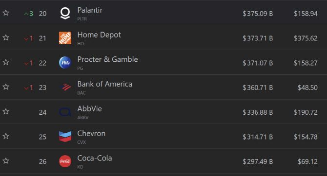 25일(현지시간) 뉴욕증권거래소에서 팔란티어 주가는 장중 약 3% 상승하며 사상 최고치를 또다시 경신했다. 시가총액은 3750억달러에 달하며 홈디포, 프록터앤드갬블(P&G), 코카콜라, 뱅크오브아메리카 등을 모두 제쳤다.
