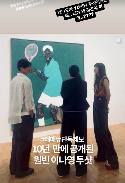 공개된 사진에는 박인비가 원빈, 이나영 부부와 함께 미술관을 찾은 모습이 담겨 있다. 세 사람은 나란히 서서 작품을 감상하고 있으며, 조용하고 단정한 분위기 속에서도 눈길을 끄는 원빈과 이나영의 모습이 포착돼 팬들의 시선을 사로잡았다.