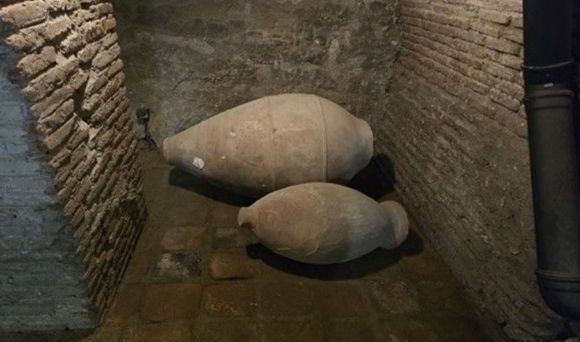 조지아 포도주를 담그는 달걀 형태 항아리인 '크베브리' 통이 놓여 있다. [사진=윤영선] |