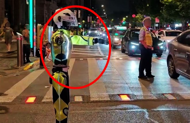 중국 상하이의 중심가에서 ‘로보캅’이 교통을 통제하는 이색적인 장면이 포착됐다.