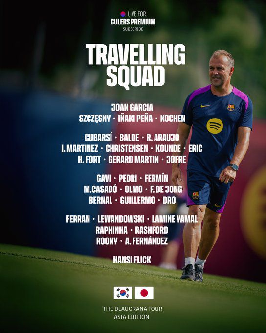 7월 말부터 시작되는 아시아 투어(한국, 일본) 명단에도 래시포드 이름을 올렸다. 바르셀로나는 최근 아시아 투어에 참가할 30인 명단을 발표했고 야말, 레반도프스키, 하피냐, 페드리, 프렝키 더용, 아라우호, 가비, 다니 올모 등 핵심 주전들이 모두 포함됐다.