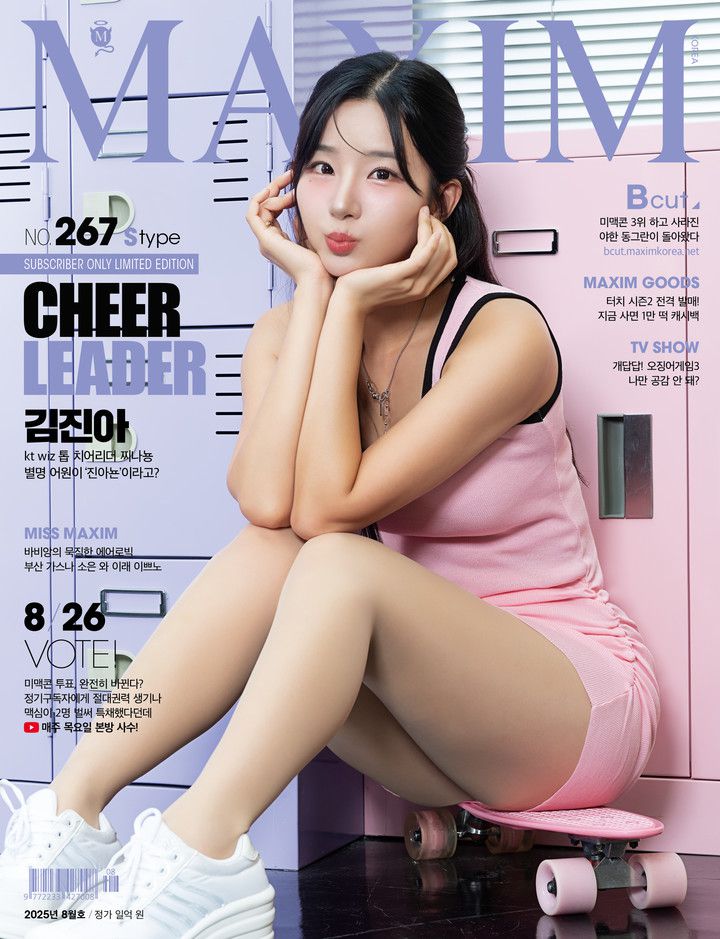 (MHN 이건희 인턴기자) 치어리더 김진아가 남성 잡지 맥심(MAXIM) 2025년 8월호 커버 모델로 등장하며 화제를 모았다.