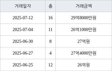 국토교통부 실거래가 공개시스템에 따르면 지난 2025년 7월 4일 서울특별시 강남구 역삼동 역삼래미안 11층 전용면적 59㎡형이 26억1000만원에 거래됐다. 지난 2025년 7월 12일 같은 면적형인 16층 물건이 29억8000만원에 실거래된 것과 비교해 3억7000만원 낮은 가격이다.