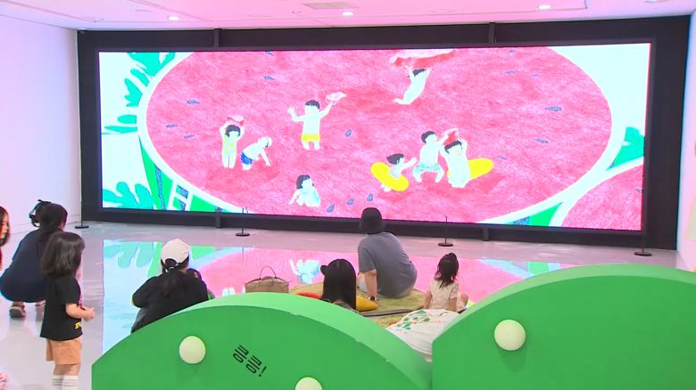 이곳에서는 안녕달 작가의 그림책 '수박 수영장'을 다양한 형식으로 즐겨볼 수 있는 전시가 한창인데요.