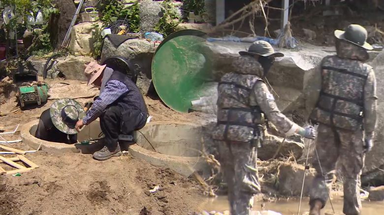 제 뒤로 수해로 묻힌 수도관 모터를 교체하고 토사를 치우는 작업이 이뤄지고 있습니다.