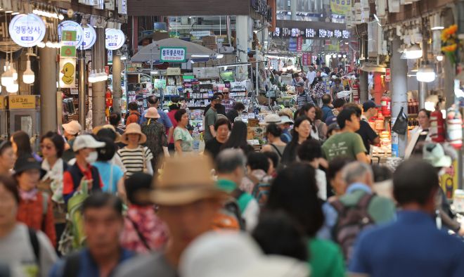 민생회복 소비쿠폰 지급 시작…북적이는 시장 - 서울 동대문구 청량리종합시장이 장을 보려는 시민들로 북적이고 있다. 2025.7.25 뉴스1 |
