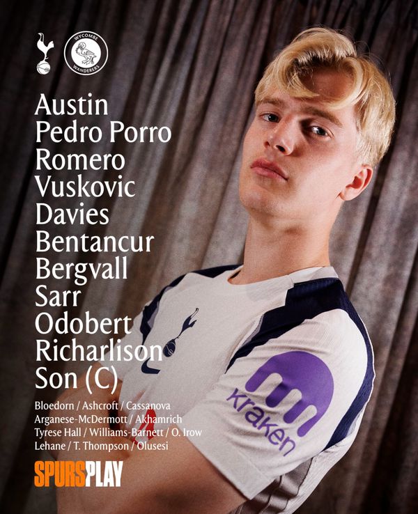 공격진에는 손흥민을 비롯해 히샬리송, 윌손 오도베르가 스리톱에 배치됐으며, 중원에는 파페 사르, 루카스 베리발, 벤탄쿠르가 이름을 올렸다. 수비진은 벤 데이비스, 로메로, 루카 부슈코비치, 페드로 포로가 나서며, 골키퍼는 오스틴이다.