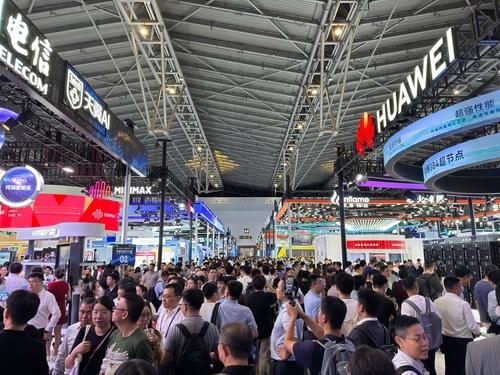 전시장에서 가장 넓은 자리를 차지한 화웨이 부스에서도 면적 대부분을 차지하는 16개짜리 검은 캐비닛과 그 안에 탑재된 AI용 신경망처리장치(NPU) 384개는 이목을 끌었고, 화웨이 설명 요원들은 중국인·외국인 가릴 것 없이 관람객을 수십명씩 몰고 다녔다.