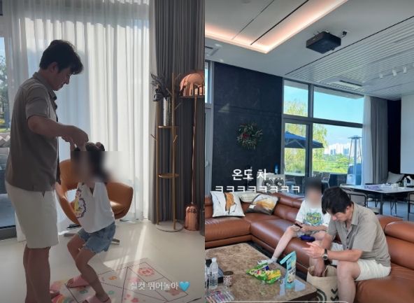 공개된 사진에는 100억대로 알려진 이들 부부의 집 곳곳의 모습이 담겨 있다. 정준호는 거실로 보이는 곳에서 딸과 함께 일명 ‘땅따먹기’ 놀이를 하고 있으며 이하정은 “실컷 뛰어놀아”라며 사랑스러운 부녀의 일상에 흐뭇한 모습을 보였다.