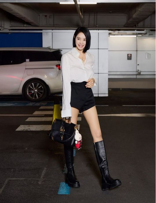 화이트 셔츠에 핫팬츠, 블랙 부츠까지. 단정한 조합만으로도 시선을 압도한 건 배우 김혜수였다.