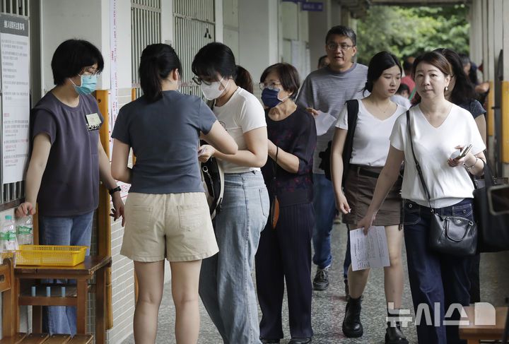 [타이베이=AP/뉴시스] 대만 야당 의원 24명에 대한 파면을 묻는 국민소환 투표가 실시된 26일 타이베이 한 투표소에서 유권자들이 투표하기 위해 줄을 서고 있다. 투표 잠정 결과 이들에 대한 파면은 전부 부결됐다. 2025.07.26. |