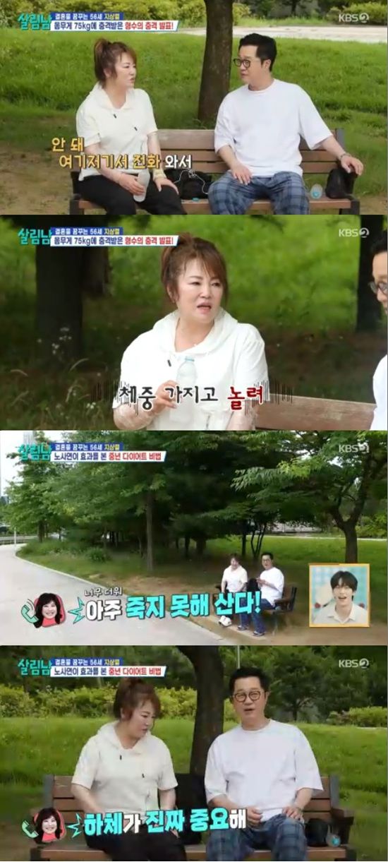 지상렬은 노사연과 통화를 하면서 "누나 동생 정귀남 씨가 살을 뺀다고 난리다"라고 말했다.