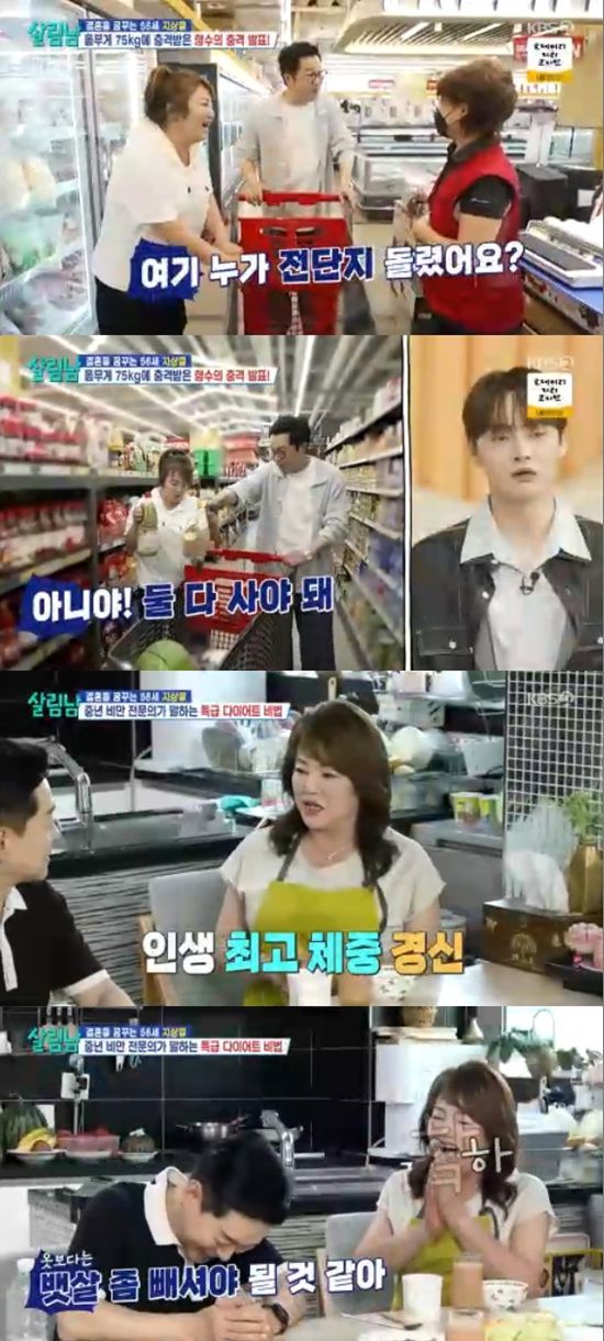 지상렬은 형수와 함께 마트로 가서 장을 봤다. 마트 직원들은 지상렬 형수를 보더니 몸무게 75kg 얘기를 계속 했다.