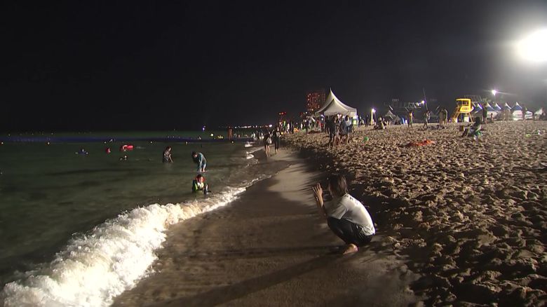 밤에도 즐기는 해수욕이 여름 바다의 새로운 풍경으로 자리 잡고 있습니다.