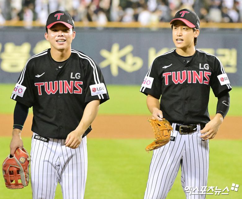 "어제 땅볼(9회초 김대한 3루수 땅볼) 나온 것도 3루수가 문보경이었으면 세이프다"라고 돌아본 염 감독은 "공을 글러브에서 빼는 게 빨라서 그게 승부가 되는 거다. 볼 빼는 게 우리나라 최고 수준이다. 내가 본 선수 중에서 강정호 다음으로 볼 빼는 속도가 빠르다"고 설명했다.